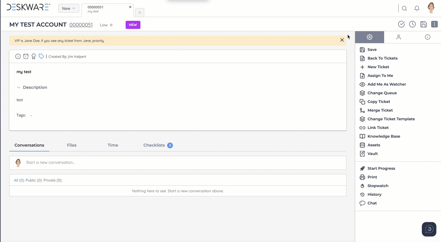 We are happy to announce Deskware Vaults. Vaults are a way for you to store information (usually sensitive information). Instead of having to store this type of information in a conversation, you can now use Vaults to keep the information organized and easily accessible.